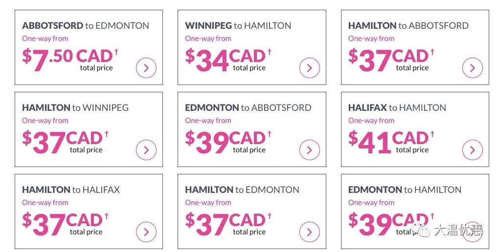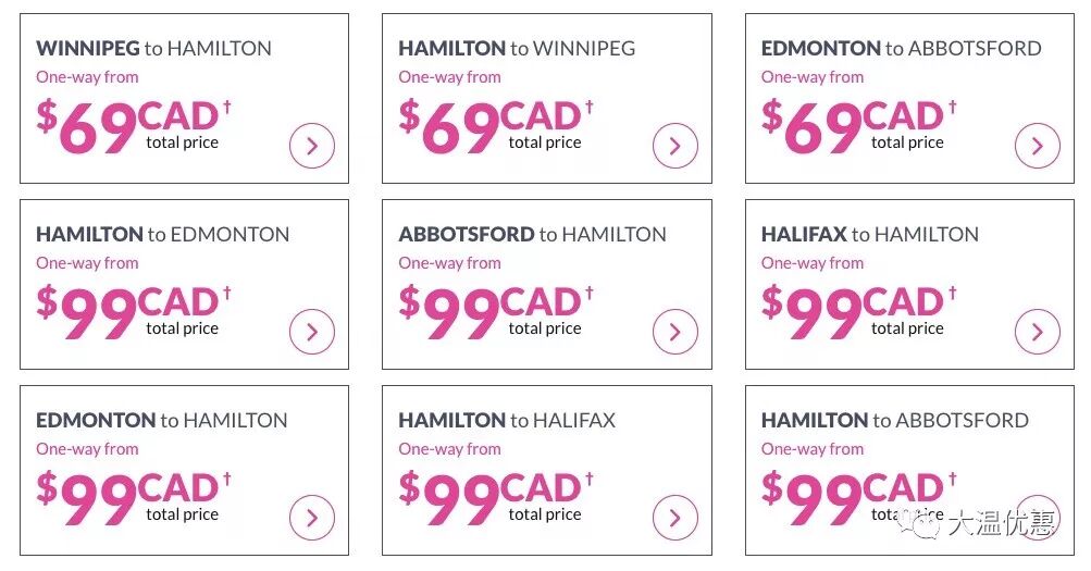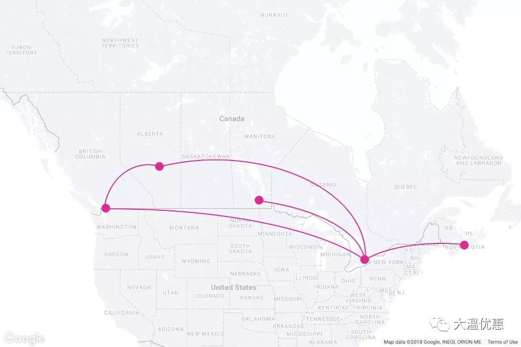 该航空公司还从温尼伯、埃德蒙顿和哈利法克斯出发,其他航班也是不到$40,这在之前加拿大航班都是没有听说过的价格。