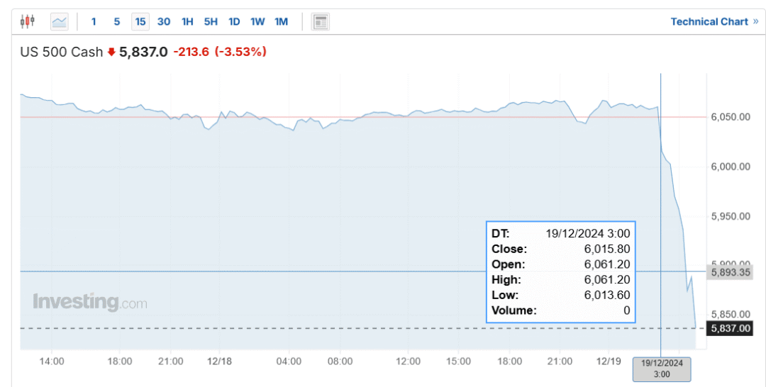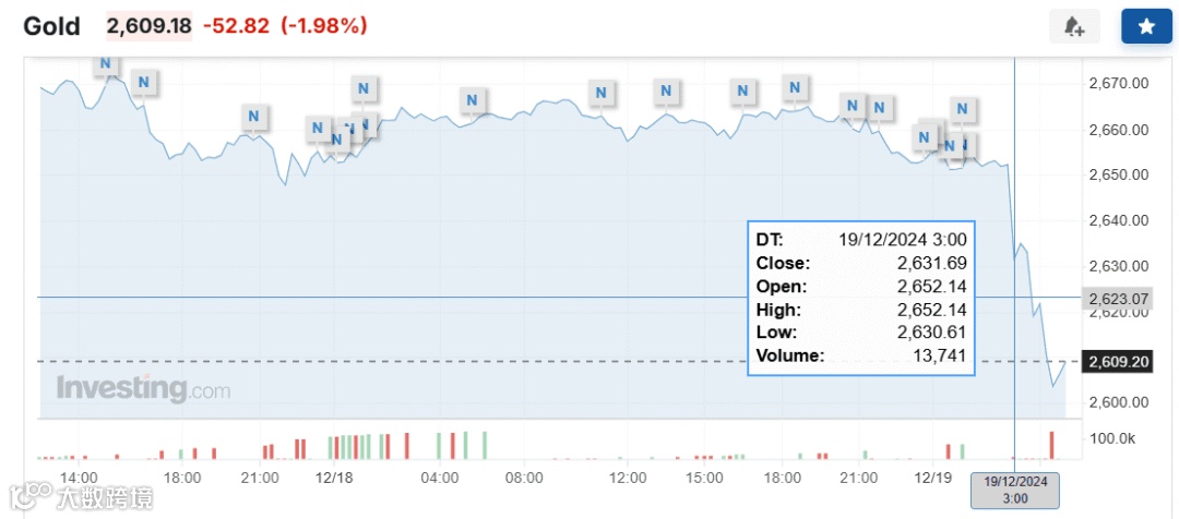 鲍威尔“放鹰”称美联储对降息持谨慎态度,强调必须看到新的抗通胀进展,有官员投票反对降息,美债收益率和美元上涨,非美货币、金价和美股跳水,道指一度跌超1100点,难逃十日连跌命运,为1974年来最长连跌天数。标普创2001年来最大降息日跌幅,比特币狂泻超6000美元。