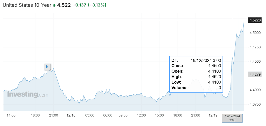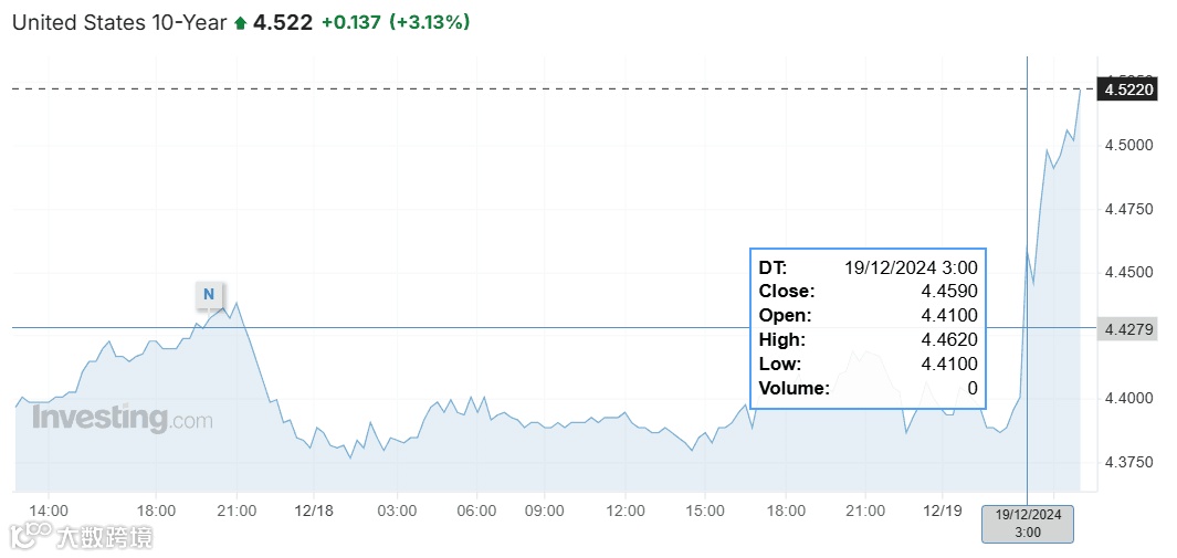 美东时间12月18日周三,美联储在货币政策委员会FOMC会后宣布,联邦基金利率的目标区间从4.5%至4.75%降至4.25%至4.5%,连续第二次会议决定降息25个基点。至此,美联储连续第三次会议降息,自2022年3月至去年7月累计加息525个基点后,三次合计降息100个基点。本次美联储继续降息的行动和幅度均符合华尔街预期。
