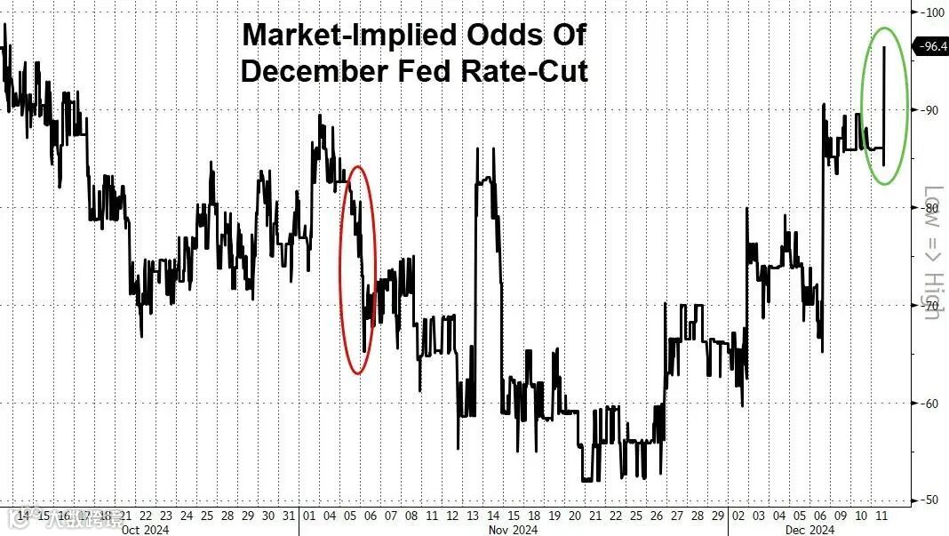 周四,市场普遍预期美联储将在下周的FOMC会议上宣布降息,联邦基金期货市场目前显示,12月17-18日的FOMC会议上,美联储官员几乎100%会选择再次降息25个基点。