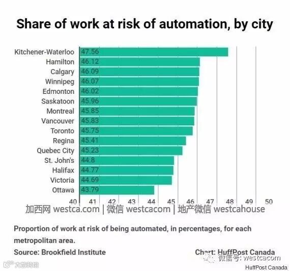 不过,加拿大约有46%的工作面临被机器取代的风险。