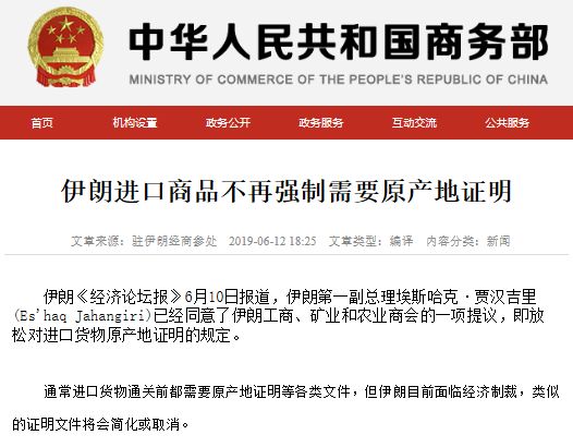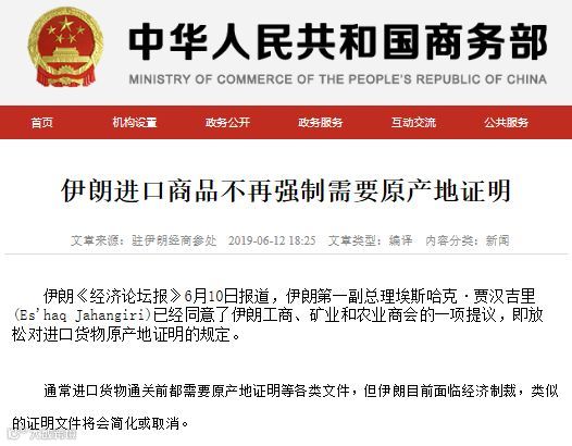 伊朗《经济论坛报》6月10日报道,伊朗第一副总理埃斯哈克·贾汉吉里(Es'haq Jahangiri)已经同意了伊朗工商、矿业和农业商会的一项提议,即放松对进口货物原产地证明的规定。通常进口货物通关前都需要原产地证明等各类文件,但伊朗目前面临经济制裁,类似的证明文件将会简化或取消。