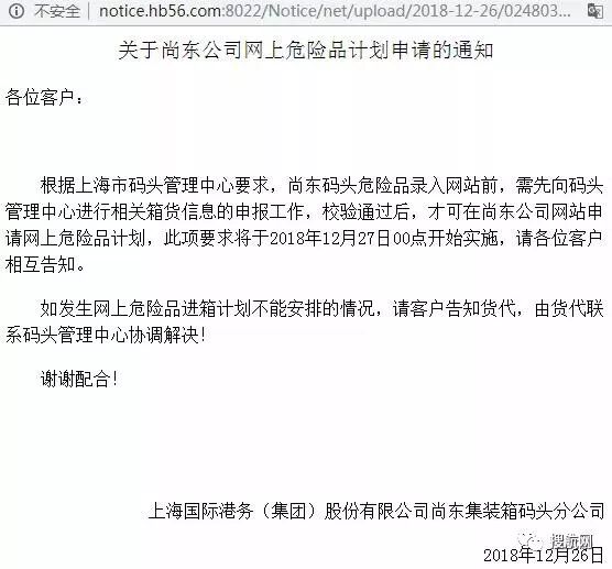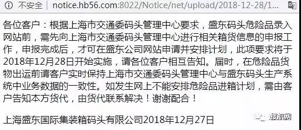 有从上海港进行危险品的小伙伴们注意了!