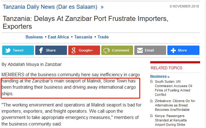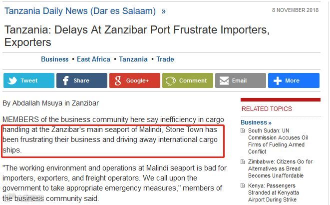 导致这种情况的原因,其实早在2018年11月就已显现,当时坦桑尼亚商界人士表示:桑给巴尔港的货物装卸效率低下,延误严重,令他们的生意受挫,并导致航运公司跳港。桑给巴尔港的工作环境和运作对进口商、出口商和货运经营者都不利。我们呼吁政府采取适当的应急措施。由于服务质量差,一些重要的国际货船已取消停靠桑给巴尔海港。