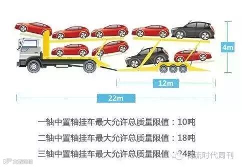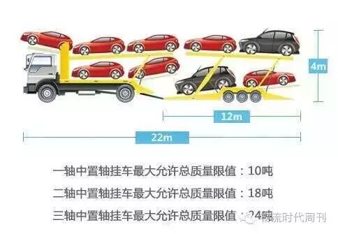 3.新增了中置轴车型的分类,中置轴挂车长度限值12米,由货车和牵引杆挂车或中置轴挂车的组合属于货车列车,货车列车长度限值20米(中置轴车辆运输列车限长22米)。