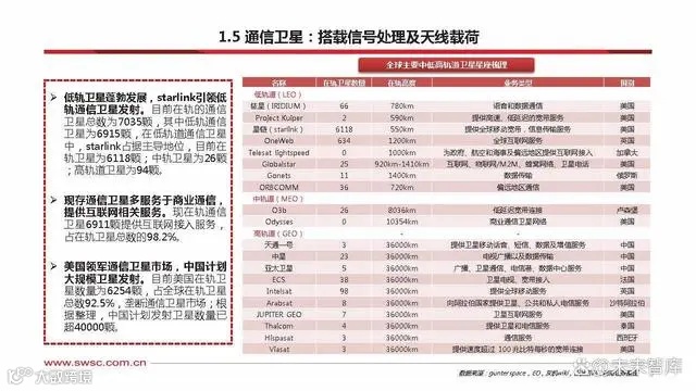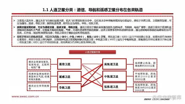 卫星是人造天体,通过太空飞行器如运载火箭、航天飞机等发射到太空中,它们在太空中绕地球或其他行星运行,类似于天然卫星。卫星按照功能,可 分为通信,遥感,导航卫星;按照轨道高度,则可以分为高轨,中轨,低轨卫星。