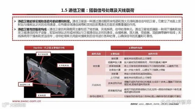 通信卫星有效载荷构成:通信卫星的有效载荷主要包括了转发器、天线系统、信号处理单元。通信卫星转发器是一种用于接收和转 发卫星通信的电子设备,实现地球站之间或地球站与卫星通信站之间的通信,由接收器、放大器、变频器、混频器等器件组成;天 线系统用于接收和发送信号;信号处理单元用是对接收到的信号进行各种处理,以确保信号的质量和可靠性。