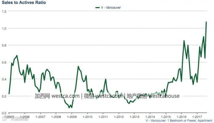 配图为大温地区1卧室公寓销存比,达到惊人的107%。