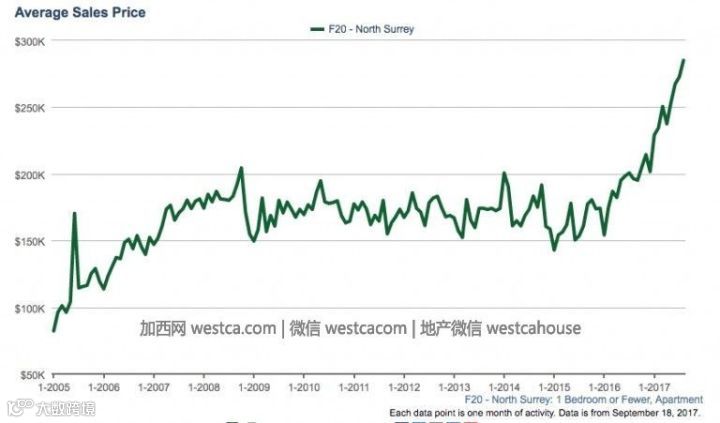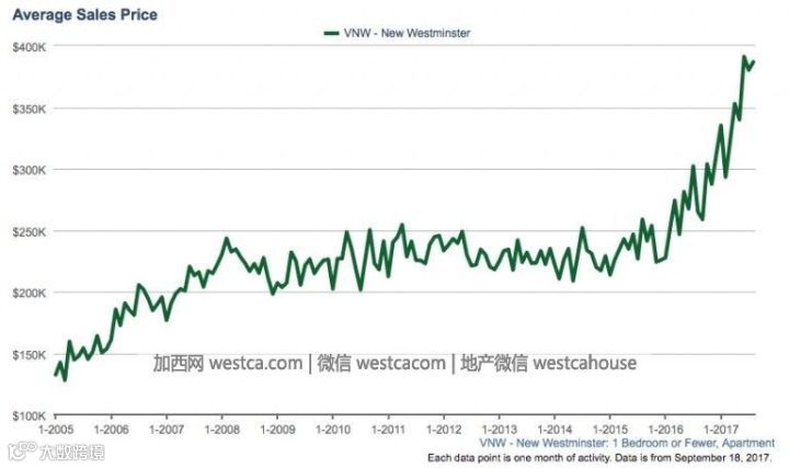 2017年8月,北素里公寓相比去年8月价格增长45%, 而在2016年初起步前,价格几乎一直稳定。