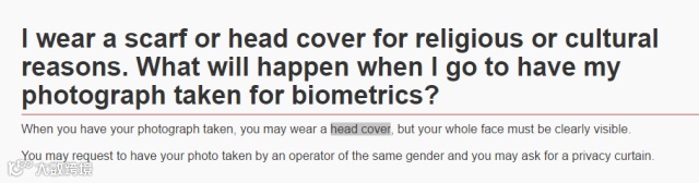 拍照的时候,你可以戴着帽子,但是整张脸必须清晰可见。你可以申请同性别的工作人员来拍照,并可申请挂上隐私门帘。