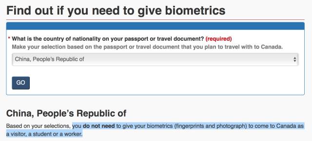我们登录加拿大 IRCC (移民、难民与公民部,即原移民部)网站查询签证相关要求http://www.cic.gc.ca/english/visit/biometrics.asp ,确定截止本文发布前尚正式通知对中国境内签证申请者要求采集生物信息。