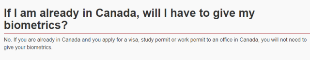 如果我已经在加拿大境内,还要提交生物信息吗?