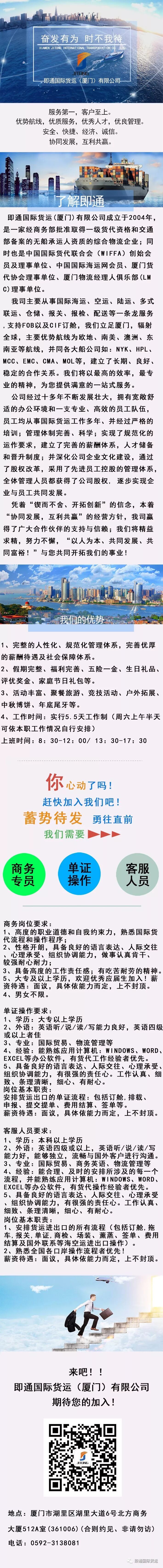即通国际货运(厦门)有限公司欢迎您的加入!