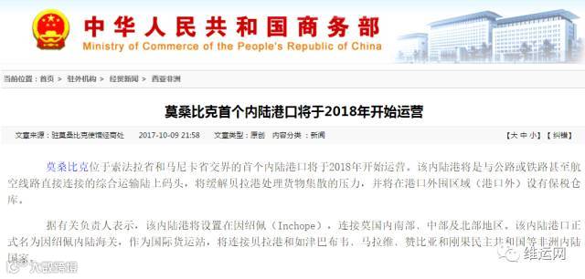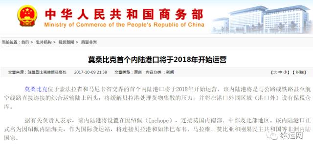 莫桑比克首个内陆港口将于2018年开始运营