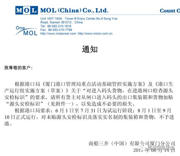 01厦门全部码头从7月1日起出口集装箱都必须有贴安检标识。