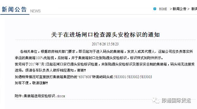 根据港口局要求:6月1日至7月31日为试运行阶段;8月1日至9月10日正式运行,对未贴源头安检标识及落实实名制的集装箱和货物,不予进港。