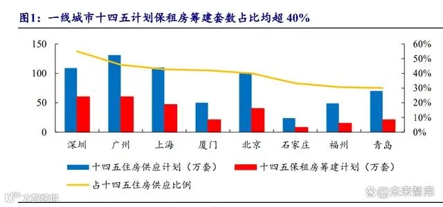 根据我们报告《保障房系列报告一:租售并举双轨制逐渐完善,保障房建设破 竹建瓴》统计,自 2021 年 4 月政治局会议以来,政府一直呼吁增加保障性租赁住房 的建设与供给,出台了一系列财政补助、土地优先供应、信贷扶持、税费减免等支 持政策,统筹推进住房保障工作。规划方面,“十四五”期间,我国计划建设筹集保 租房 870 万套,预计可解决 2600 多万新市民、青年人的住房困难,可完成投资 3 万 亿元左右。其中北京、上海、广州、深圳 4个一线城市十四五期间将分别筹建保租 房 40 万、47 万、60 万、60 万套,保租房筹建都将达本市住房供应总量的 40%以上。