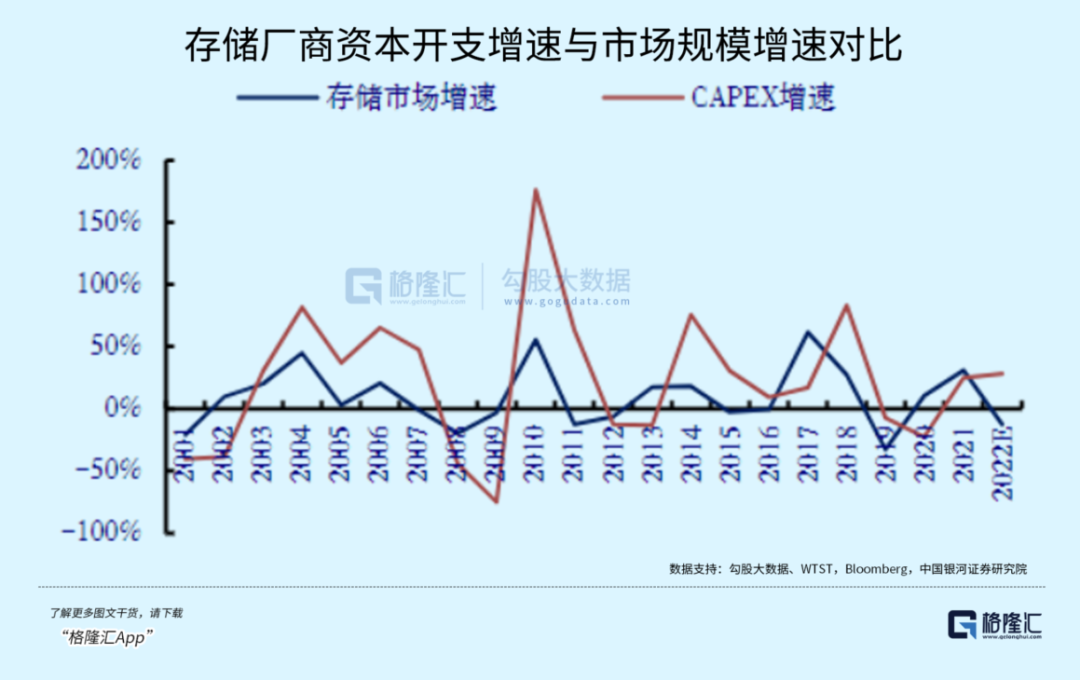 供给端的收缩致使未来供需结构逐步改善,有望驱动存储周期再度上行。行业资本开支增速从22年10开始向下调整,三大存储巨头连续宣布减产。比如美光2023年的资本开支同比减少42%,为保利润2024年还要进一步减产30%。