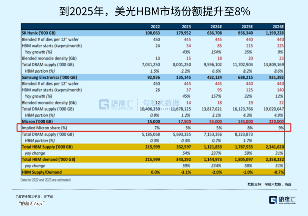 这也是高盛因此看好美光会后来居上的原因,预计到2025年,美光HBM的市占率仍有上升潜力。