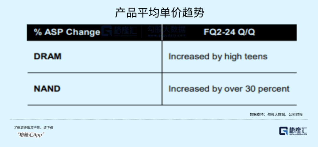 并且,AI的发展影响了上游芯片端的供需变化,加速库存出清,存储芯片的价量反转开始反映在营收上。公司主要产品DRAM bit出货量和平均售价都实现了环比增长;NAND bit平均售价环比增长超30%。