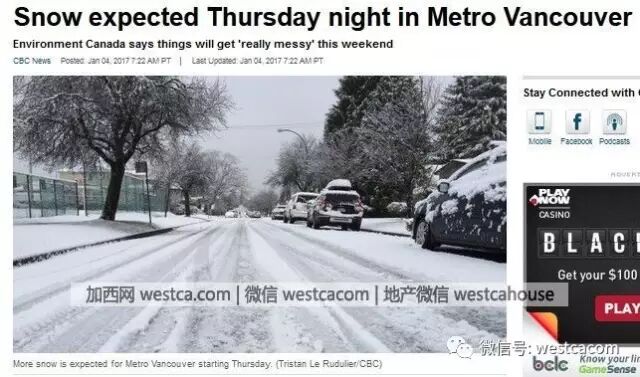 (加西网综合)从去年底开始一场接一场的飞雪,温哥华成了”雪哥华“,全城冰封,出行困难,盐荒问题也让人火爆,但是,更坏的消息还在路上:预计今天周四晚上开始又双叕开始飘雪,气象专家表示,星期天的雪暴最恐怖。