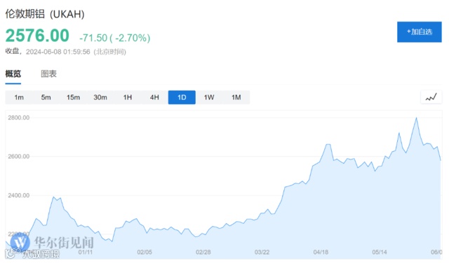 伦铝和伦锡分别收跌2.7%和3.1%,至5月初以来最低水平。