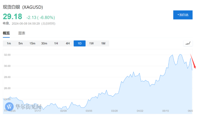 白银一度暴跌逾7%,创下2021年2月以来的最大盘中跌幅。铂金和钯金价格也大幅走跌。