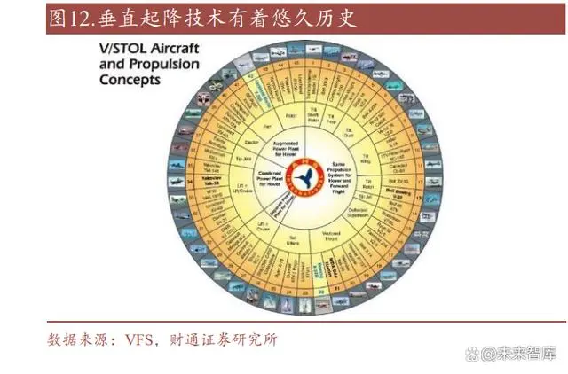 矢量推力型 eVTOL 技术难度较大,长期或将成为发展主流。垂直起降飞行器的 研发具备悠久历史,多旋翼型、升力+巡航型和矢量推力型 eVTOL 的技术均源自于相同气动布局的直升机或无人机。美国、俄罗斯(前苏联)等自 20 世纪 70 年 代起便开启推力矢量技术的理论研究和实践,但由于存在气动干扰、旋翼耦合对 机翼的影响以及飞行力学模型复杂,大部分机型目前运行情况未实现稳定。采用 倾转旋翼技术的军用飞机 V-22“鱼鹰”服役以来至少发生过 16 起事故,民用飞机 AW609 测试期间发生过多起事故。尽管技术难度较大,矢量推力构型的飞机速度 和续航具有一定优势,随着未来技术进一步成熟,或将成为发展主流。