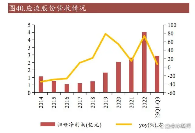 高端铸造领军者,产业链持续升级。安徽应流机电股份有限公司,前身为于 2000 年创立的安徽霍山应流铸造有限公司,应流股份成立初期即专注于铸造零部件与 材料研发,产品深入航空航天、核电等高端领域,奠定行业翘楚地位。2008 年, 应流股份深化核电业务,与上海电气等领军企业合作,稳固高端铸造市场地位。2014 年,应流股份成功登陆上海主板,发展迈入新阶段。近年来,应流股份积极 拓展两机叶片业务,建设高温合金叶片项目,提升高端装备核心零部件竞争力。当前,应流股份产品出口欧美等 40 多国,服务近百家客户,包括世界 500 强及行 业领军企业,彰显国际影响力。应流股份财务稳健,营收净利持续增长。2016-2022 年应流股份营收和归母净利润 持续增长,营业收入由 2016 年的 12.75 亿元增长至2022 年的 21.98 亿元,归母净 利润由 2016 年的 0.55 亿元增长至 2022 年的 4.02 亿元。得益于业务布局优化,特 别是高毛利率的航空航天新材料及零部件业务扩张,2023 年前三季度应流股份实 现营业收入 18.07 亿元,同比增长 9.20%,应流股份归母净利润实现 2.44 亿元, 同比增长 7.04%。