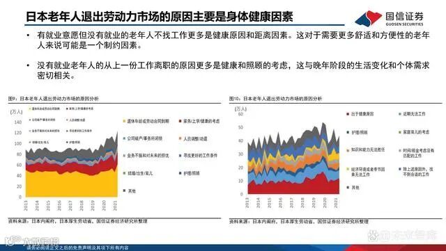 近年来,日本面临老龄化和劳动力市场动态变化,其中工作年龄段女性和老年男性的就业走高成为影响日本就业的主要因素。老年人就业比持续上升,就业目的主要以想要获取收入为主。政府和企业需要采取相应的政策和措施,以更好地满足不同年龄和性别群体的就业需求,促进更加包容和灵活的劳动力市场。