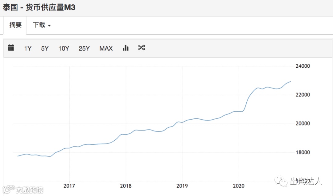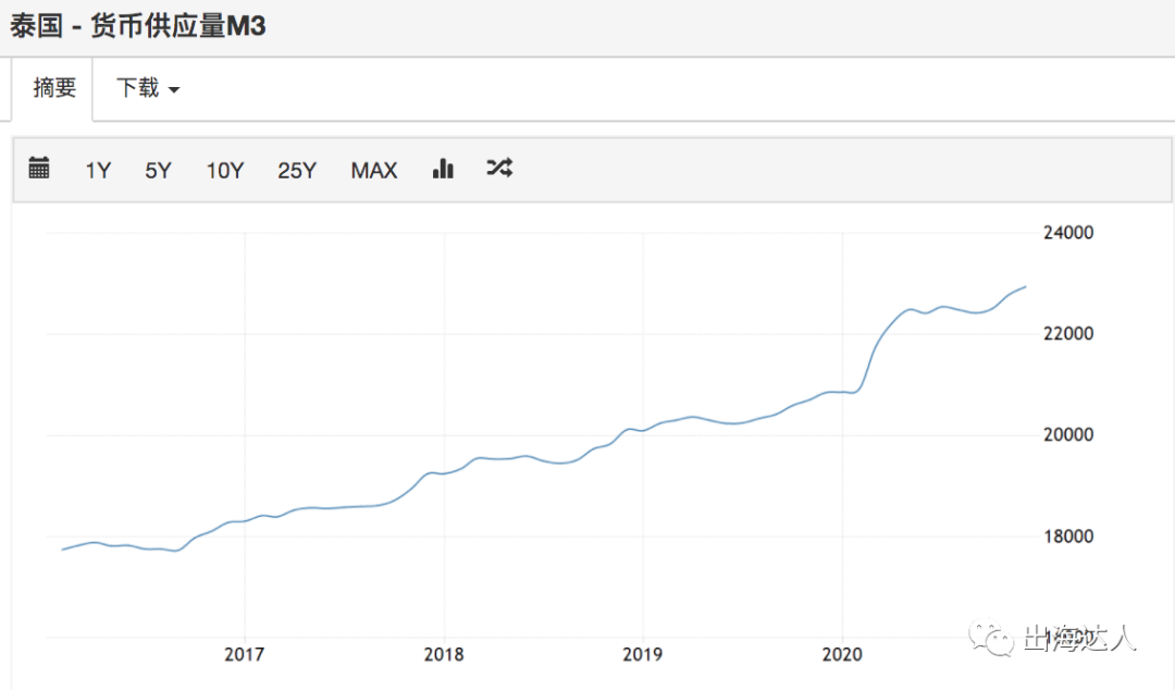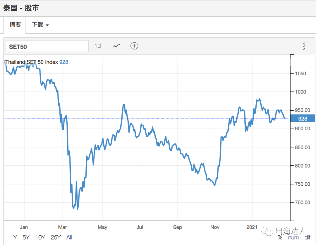 泰国虽然在疫情防控方面表现出色(洛伊国际政策研究1月27日公布全球98个国家和地区疫情防控排名中泰国仅次于新西兰、越南、台湾位列第4位),但由于泰国外向型的经济以及旅游业在经济中占比较高,泰国经济是受疫情影响最严重的国际,全年GDP下滑6.1%是继1997年亚洲金融风暴之后最严重的经济萎缩(1997年下滑7.6%,2009年下滑0.9%,其他年份均为上涨),服务出口(包括旅游收入等)下滑60%,货物出口下滑5.8%,为了复苏经济泰国政府也出台了大量的货币和财政政策,包括消费补贴、国内旅游补贴、小企业低息贷款等。但总体上看泰国政府给出的经济刺激计划的力度远低于美国、日本等发达经济体,货币供应量增幅为9.6%甚至低于中国,这也导致泰国股市和房地产市场表现相对较差。
