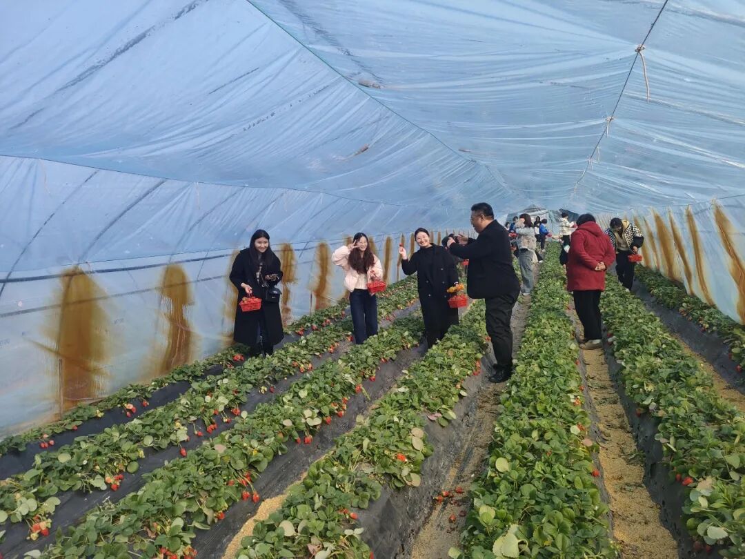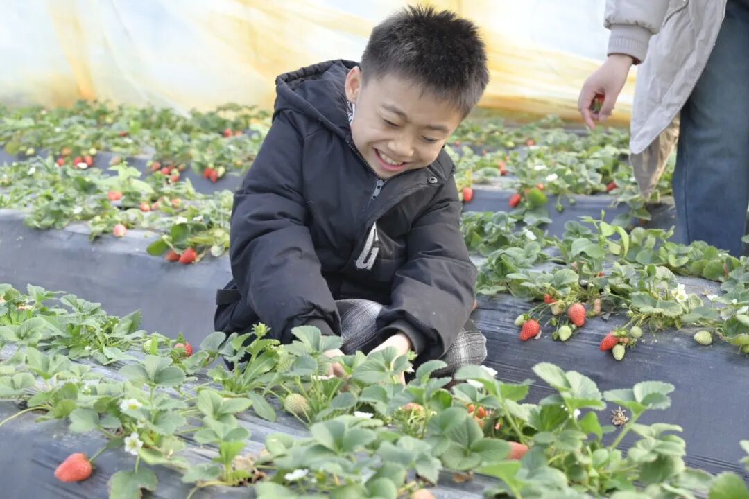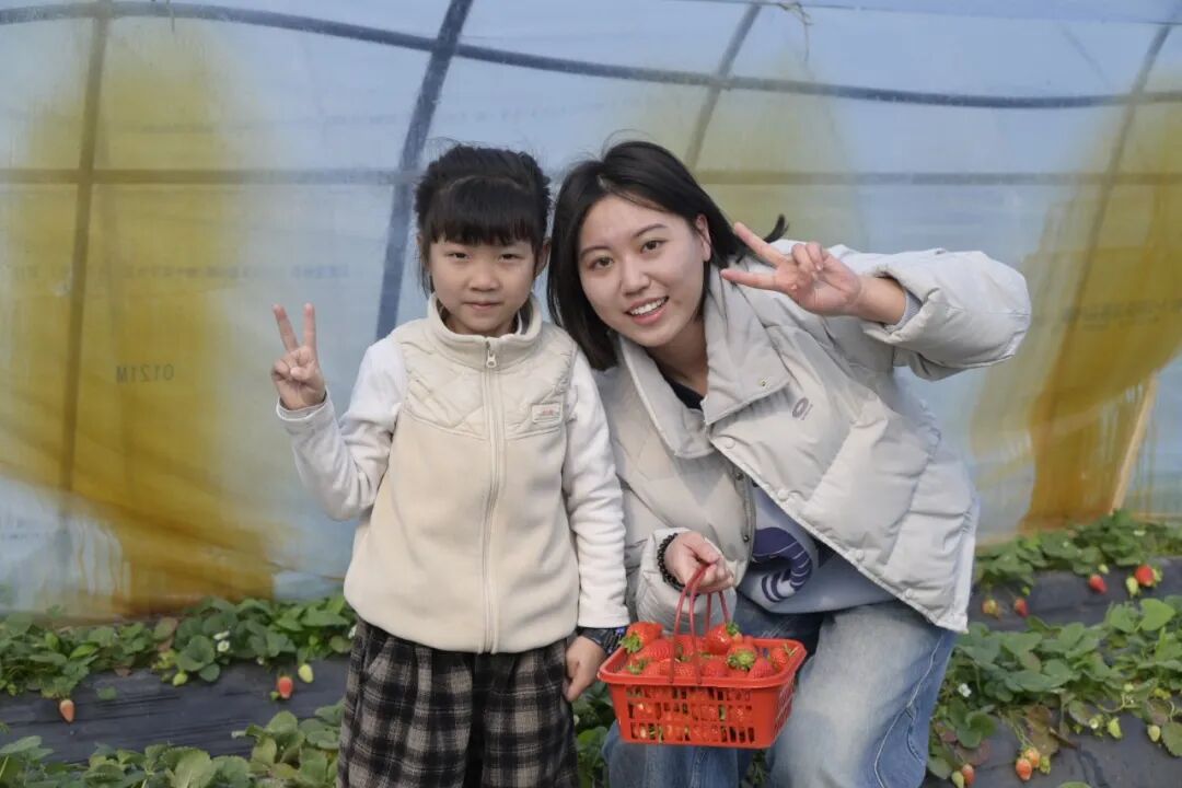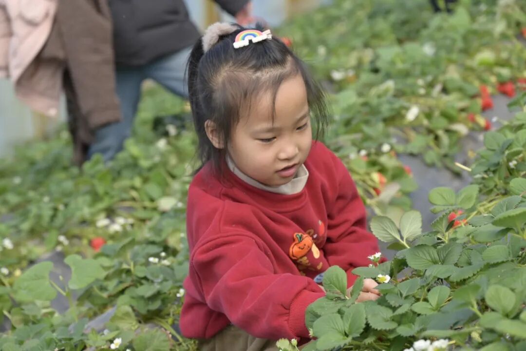 活动当天,女职工们带着孩子走进草莓种植基地,体验采摘的乐趣。孩子们兴奋地穿梭在草莓田间,亲手采摘新鲜草莓。大家一边采摘,一边交流,现场气氛轻松愉快。