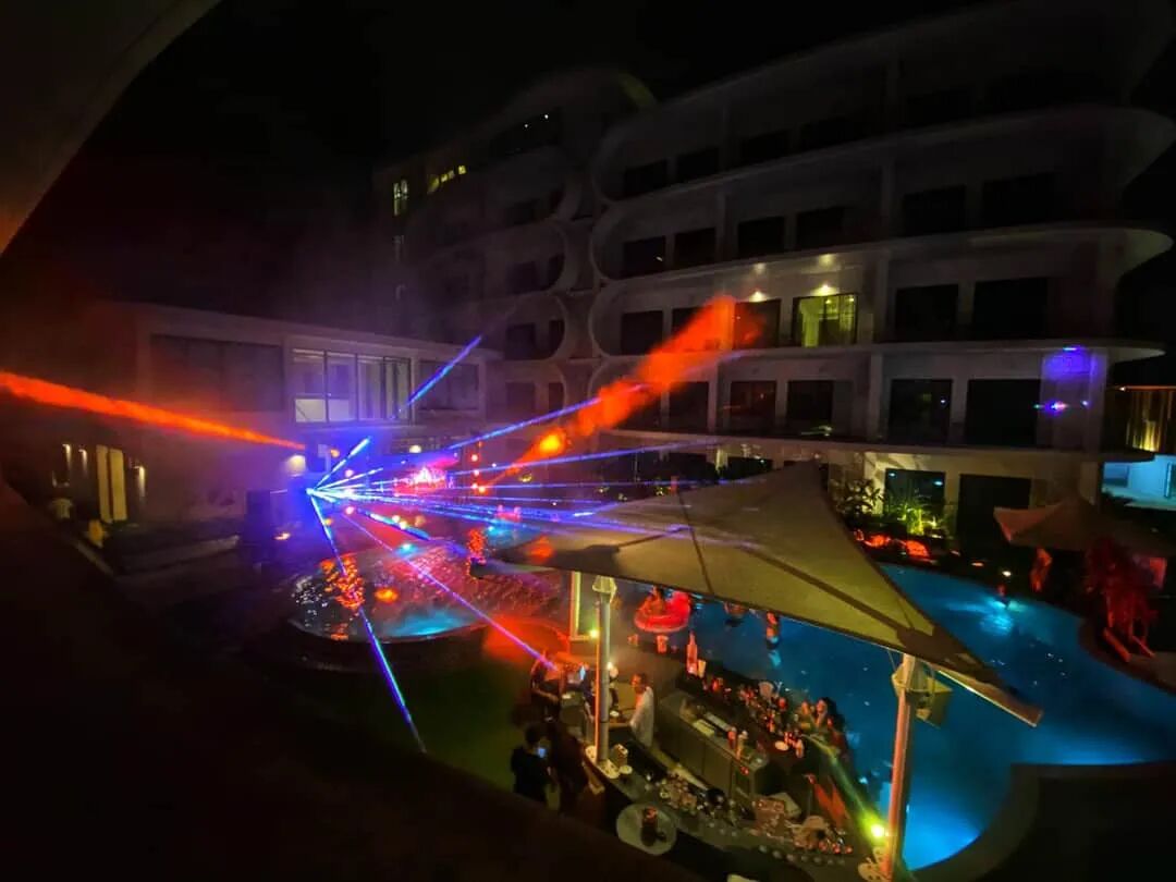 25日晚上9点活动正式开始,约有50位入住UTN和UTL的客人来到UTN酒店一层的花园泳池参加活动;另外还有不少入住在UTN的客人在阳台上一起享受音乐盛宴;