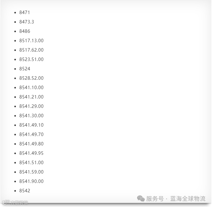 具体豁免的HTSUS编码见下图: