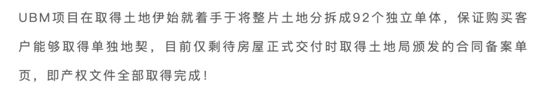 刚刚,UBM取得了全部92栋的独立地契以及房产证蓝本;