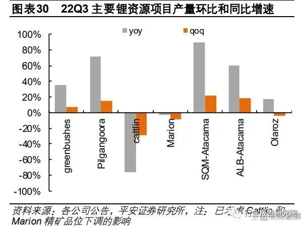 1.1.1 2022Q3 环比减产的项目:Cattlin、Marion 锂矿环减 29.1%和 15.6%,Olaroz 盐湖环减4.5%