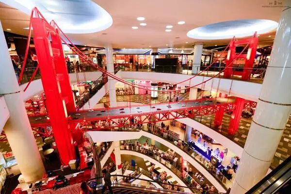 一个非常富有创意的一个商场,布局以航站楼为主题,一共九层,每一层配以不同国家城市的著名街道、标志性建筑物等,每层的厕所风格也不一样,可谓别具特色。