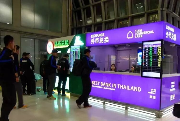 1.办理落地签的朋友可以在入境之前换泰铢,在入境的通道边上就有各个银行的人工兑换柜台,柜台颜色鲜艳,在机场中非常显眼,一定要对比三家,每家银行的汇率不太一样,但是共同的特点就是汇率低的吓人,建议不要在机场中兑换泰铢,如果你不是必须用钱的话。