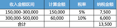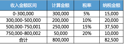 备注:每年净收入税收的计算,按不同收入区间,对应不同税率来计算,如下图所示