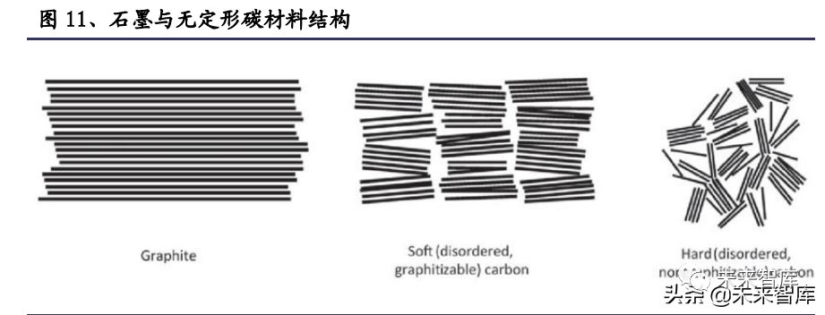 碳基材料被视为十分有发展前景的钠电池负极材料。按照石墨化程度,碳材料可 以分为石墨类碳和无定型碳两大类。其中,石墨化程度较高的碳材料由于比表面 积较大,有序性较强使得库伦效率极低,难以满足商业应用;而归属于无定形碳中的硬碳表现出了高达 530mAh/g 的储钠比容量,即便经过高温处理也难以出现石 墨化的现象,表现出更强的储钠能力以及更低的工作电位,例如宁德时代开发了 比容量 160mAh/g、具有独特孔隙结构的硬碳材料,但材料成本高昂是硬碳的瓶颈。中科海钠则考虑软碳路线,采用成本更加低廉的无烟煤作为前驱体,通过简单的 粉碎和一步碳化得到无烟煤基钠离子电池负极材料,储钠容量 220mAh/g,在所有 的碳基负极材料中具有最高的性价比。