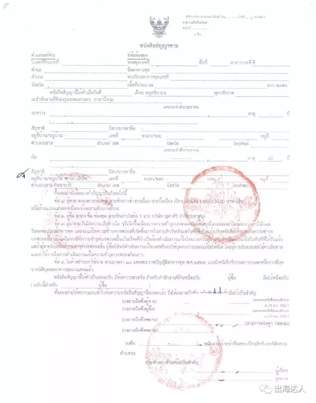 购买泰国公寓,过户时土地厅会附上所购公寓的地契。泰国地契即为泰国房地产所有权证书,是房产最安全的保障。这张地契只针对一个公寓单元,并不是整块地。此类地契的红色标志logo表示永久产权。