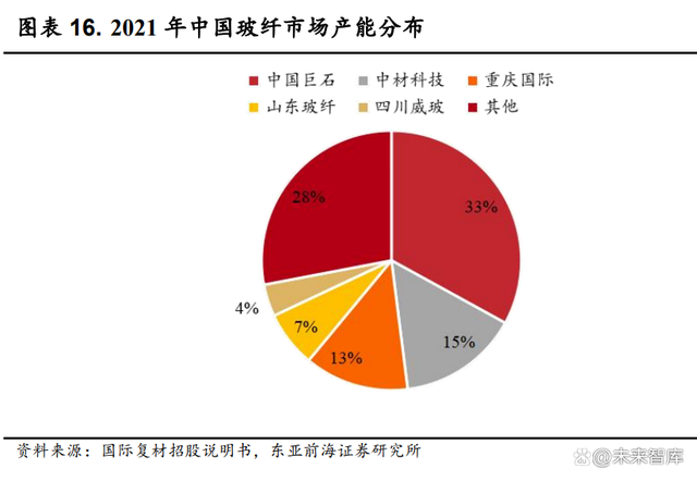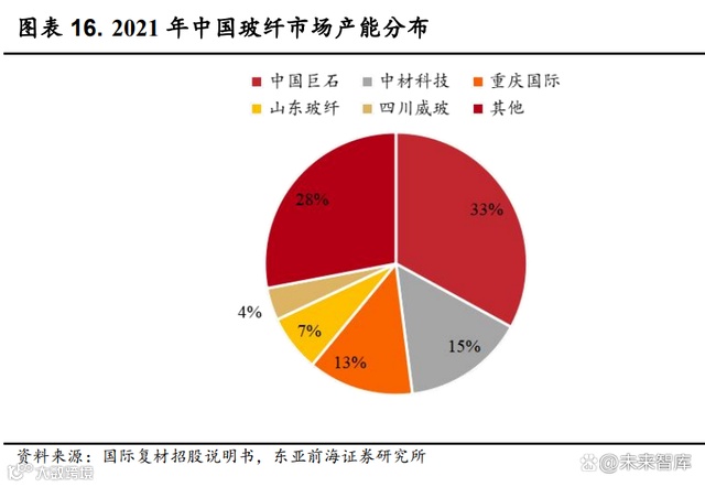 我国玻纤表观消费量高速增长,产业向高端化转型卓有成效。2010 至 2021 年,我国玻纤表观消费量从 160.7 万吨增长到 473.9 万吨,年均复合增 长率为 10.3%;我国出口量从 121 万吨增长到 168.3 万吨,年均复合增长率 为 3.0%;进口量则从 25.7 万吨下降到 18.2 万吨。根据中国玻璃纤维工业协 会的数据,我国进口玻纤多为技术含量较高的高端玻纤,单价约为我国出 口玻纤的 3 倍。进口量减少表明我国技术实力增强,产业向高端化转型卓 有成效。