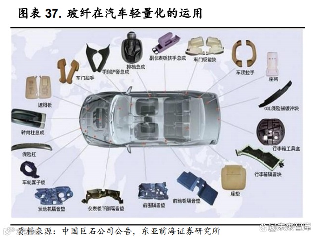 政策驱动下汽车轻量化有望加速实现。由工信部装备工业一司和中国 汽车工程学会牵头组织编制的《节能与新能源汽车技术路线图 2.0》提出, 到 2025、2030 和 2035 年,燃油乘用车整车轻量化系数需要分别降低 10%、 18%和 25%,纯电动乘用车整车轻量化系数要求更高,需要分别降低 15%、 25%和 35%。在路线图的指引下,汽车轻量化进程有望加快。汽车轻量化带动玻纤增强塑料渗透率大幅提升。改性塑料是通过特定 方法对树脂进行加工或改造获得的具有特定性能的塑料制品,玻纤增强塑 料就是改性塑料的一种。政策驱动协同技术进步下,玻纤增强塑料在汽车 上的使用有望进一步深化,持续拉动玻纤需求。