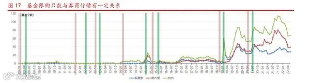 基金限购以及产业资本增持情况对券商行情判断有一定借鉴意义。基金限购只数 阶段性最低的时点往往也是券商行情的最低点,反之基金限购只数阶段性高点往往也 是券商行情的高点。产业资本增持的高点往往是券商行情的低点。