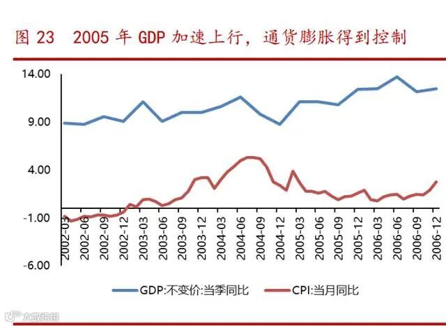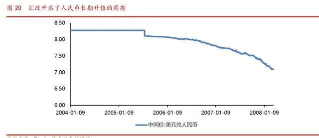 作为股权分置改革的配套措施,监管层不遗余力推动长期资金入市。包括社保基 金、保险资金入市, QFII 落地引入外资,以及公募基金行业大发展。特别的是,2005 年 7 月,央行发布《关于完善人民币汇率形成机制改革的公 告》,我国开始实行以市场供需为基础,参考一篮子货币进行调校,有管理的浮动汇 率制度,此后开启了人民币长期升值的大周期。“汇改”所开启的人民币长期升值带 来的“热钱”对于行情的推动不可小觑,甚至作为聪明资金,我们判断外资可能是行 情启动的重要因素。
