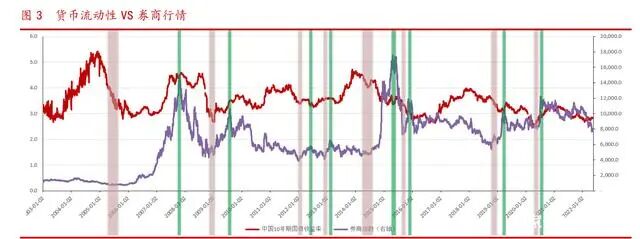 但是券商行情的启动是否伴随着经济预期的改善则在经济发展不同阶段结果有 所不同,具体分界线为 2012 年。2012 年之前券商行情启动之时,货币流动性达到宽 松的顶点,以 10 年期国债收益率来看,达到收益率的最低点,行情伴随 10 年期国债 收益率的回升而启动。换句话说,此时的宏观流动性足够宽松,同时市场对于宏观经 济基本面预期向好。2012 年之后的券商行情则启动于宏观流动性持续宽松的过程 中,也就是流动性在持续宽松,但宏观经济并无预期企稳的迹象。一方面是由于学习 效应下市场参与者行为提前,另一方是由于 2012 年之后,我国经济发展进入新常 态, 以不变价的 GDP 增速来看,2012 年后宏观经济波动明显减小。然而疫情冲击下 的 2020 年,伴随宏观经济基本面回升,10 年期国债收益率上升的 2020 年 6 月份, 券商行情的启动则符合流动性处于阶段性底部同时宏观基本面预期向好的规律。事实上,通过 M1 判断券商行情启动具有较好效果。作为投资活动先行指标,M1 增速回升体现企业资金的活化, M1 增速回升与 M1 与广义货币 M2 增速的剪刀差扩大 几乎完全同步,这反映为企业定期存款向活期存款转化增加,即资金的活跃度提升。当市场 M1 降至较低水平,则接下来 M1 大概率触底回升。