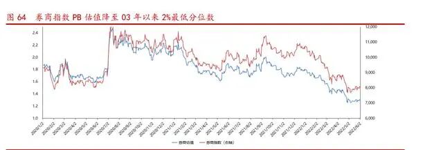 2022 年 4 月 28 日、5 月 6 日估值分别为 1.25 倍、1.26 倍,估值仅高于 18 年底 行情上涨之前的 1.10 倍,为 2003 年以来券商指数 2%最低分位数。