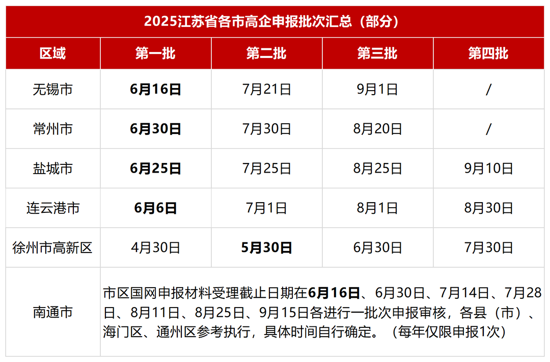 截止时间:江 苏 省 民 营 科 技 企 业 管 理 信 息 系 统 ( 网 址 :www.jssmykj.org.cn)全年受理企业注册、填报。2025年分三批次集中受理,截止时间分别为:5月31日、8月31日、10月31日。