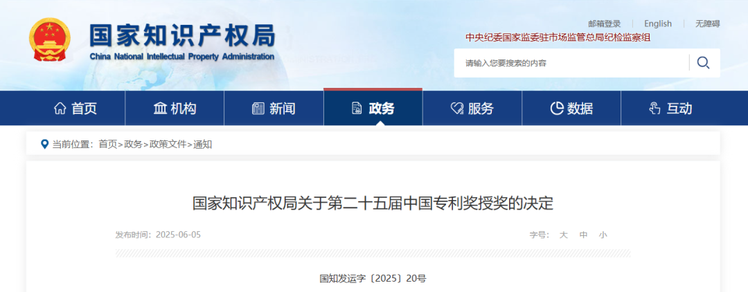 第二十五届中国专利奖获奖结果终于出炉啦!2025年6月5日,国家知识产权局发布了第二十五届中国专利奖评审结果授权决定。