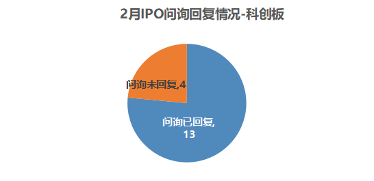 2月1日-2月28日,科创板处于“已问询状态”的企业有17家,其中13家在2月已回复问询,4家暂未回复问询。